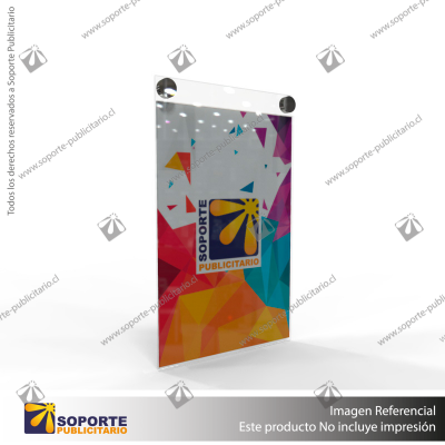 El porta grafica acrílico A4 formato muro horizontal 2mm con embellecedores tiene como principal característica la visualización frontal del arte en orientación horizontal y adosado a un muro, lo que facilita el intercambio del arte con una presentación simple y limpia. Su forma genera un bolsillo que protege la gráfica además de dejar una pestaña con 2 perforaciones para su fijación. Cada porta grafica muro contiene 2 embellecedores con 2 tornillos y 2 tarugos. El portagrafica de acrílico A4 está fabricado en acrílico transparente de 2mm de gran calidad.Original price was: $7,651.00.$6,121.00Current price is: $6,121.00. Select options -