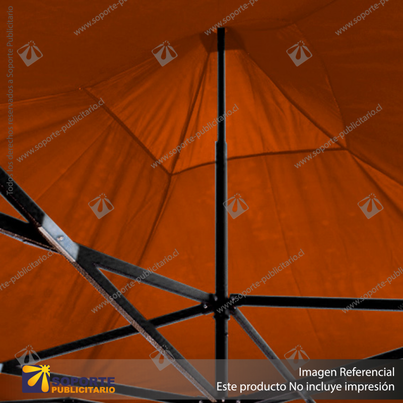 La carpa 3*4.5 mts color naranjo para toldo publicitario tiene como principal característica generar entornos que protegen al usuario de factores medioambientales como lluvia y sol entre otros, proporcionando sombra y un área confortable con una óptima visualización en 360°. El toldo publicitario se compone de 2 partes (carpas y packaging)