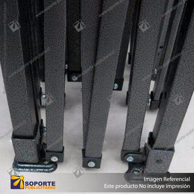 El toldo publicitario araña posee una estructura de acero retráctil con conectores la cual permite sostener el toldo de material impermeable, puede adherir gráfica, es desarmable para optimizar su almacenaje.