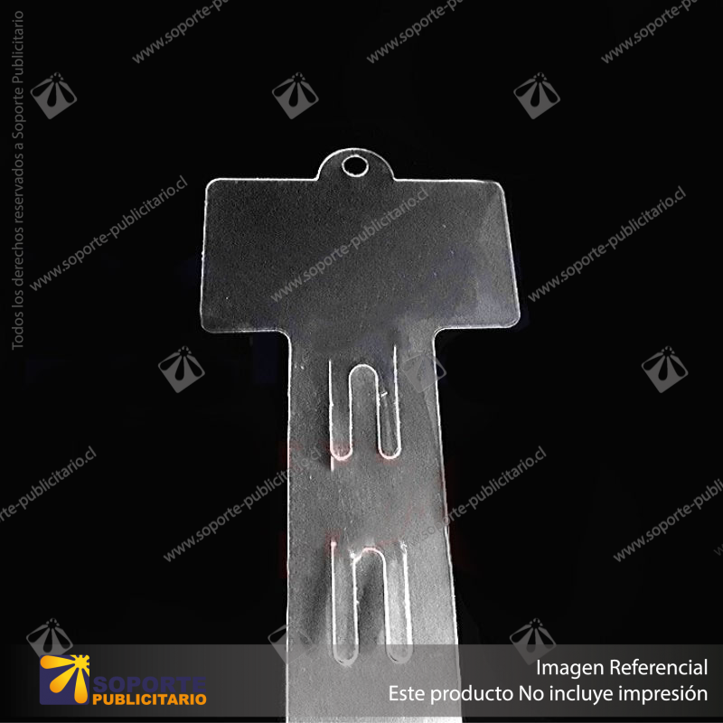 Tira de exhibición para ventas cruzadas con 10 posiciones. Cada gancho soporta productos con un peso aprox. de 25 gr. Incluye portaprecios.