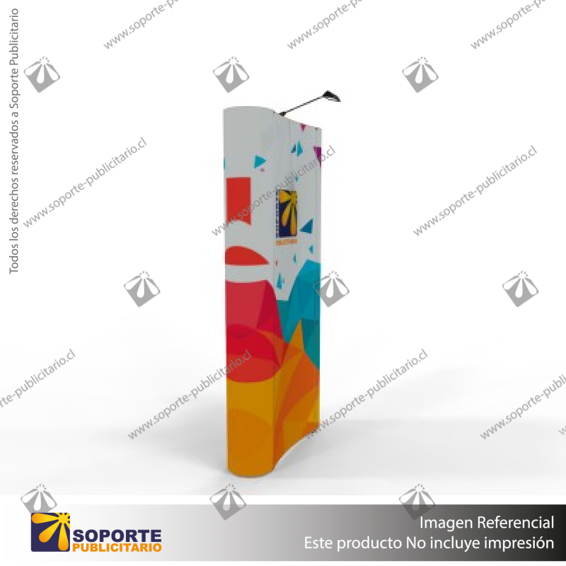 El Panel Araña PAI Curvo 1 Cuerpo tiene como principal característica generar entornos envolventes con una óptima visualización de gráfica en base un sistema de fácil armado y desarmado. La estructura es plegable quedando muy compacto para transportar. Está fabricado con aluminio de alta calidad y se compone de 3 partes (Estructura, conectores metálicos, fijaciones superiores).