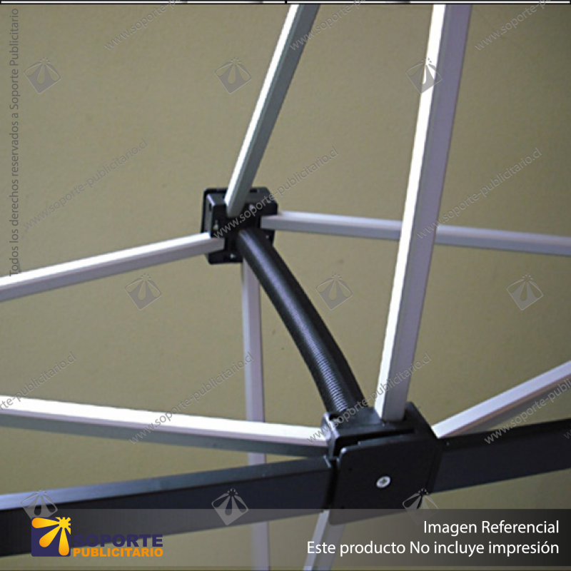 El Panel Araña PAI Curvo doble gráfica 5 cuerpos tiene como principal característica generar entornos envolventes con una óptima visualización de gráfica en base un sistema de fácil armado y desarmado. La estructura es plegable quedando muy compacto para transportar. Está fabricado con aluminio de alta calidad y se compone de 5 partes (Estructura, conectores metálicos, fijaciones superiores, láminas de PAI, Focos y carro de transporte).