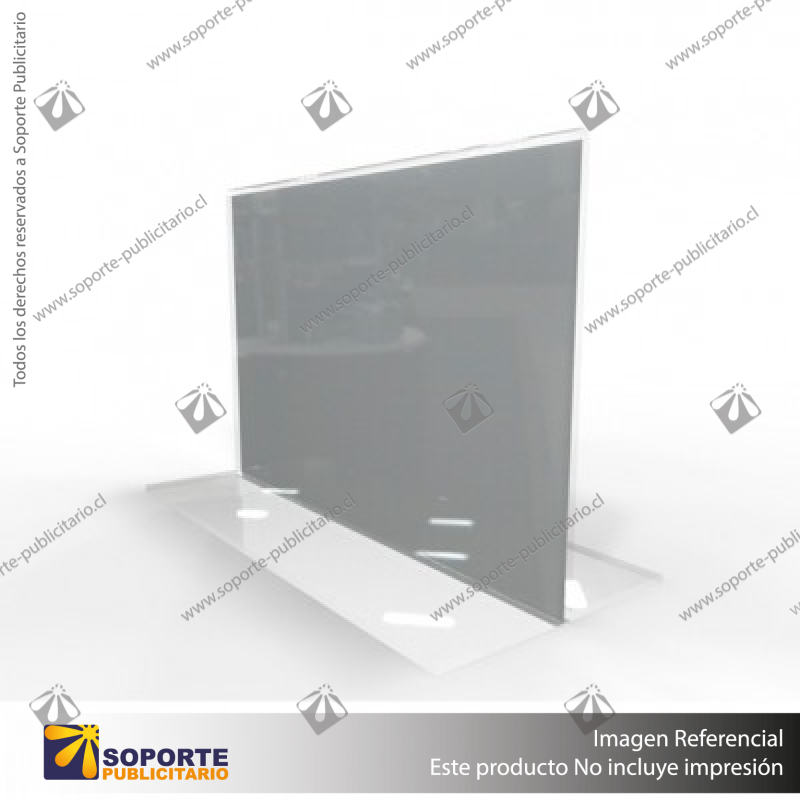 El porta grafica acrílico A5 formato L horizontal 2mm tiene como principal característica la visualización doble del arte en orientación horizontal con 90° de inclinación para facilitan la exhibición del arte con una presentación simple y limpia. Su forma en tipo “T” genera un bolsillo que protege la gráfica y le da estabilidad al soporte. El portagrafica de acrílico A5 está fabricado en acrílico transparente de 2mm de gran calidad.