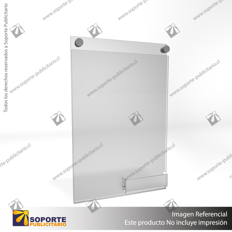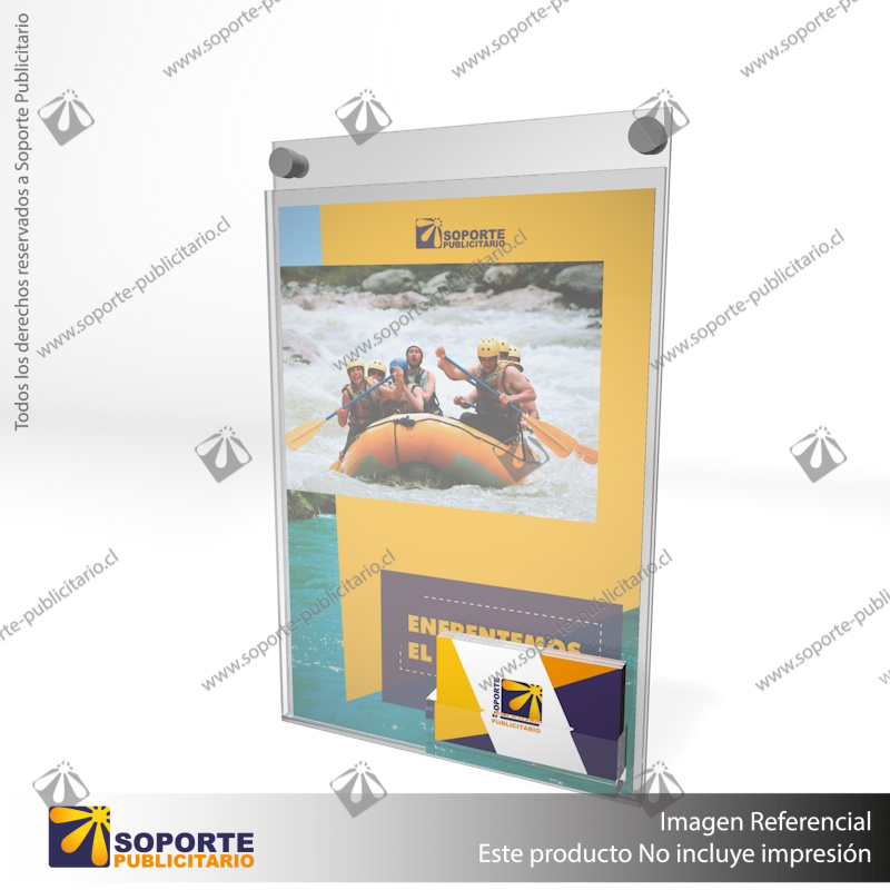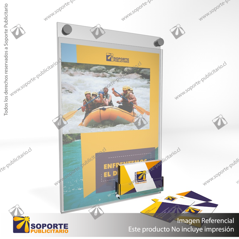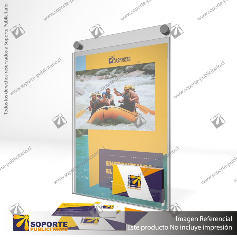 PORTA GRAFICA ACRILICO CON TARJETERO A4 (21*29.7 CMS) MURO VERTICAL 2 MM + SET EMBELLECEDOR