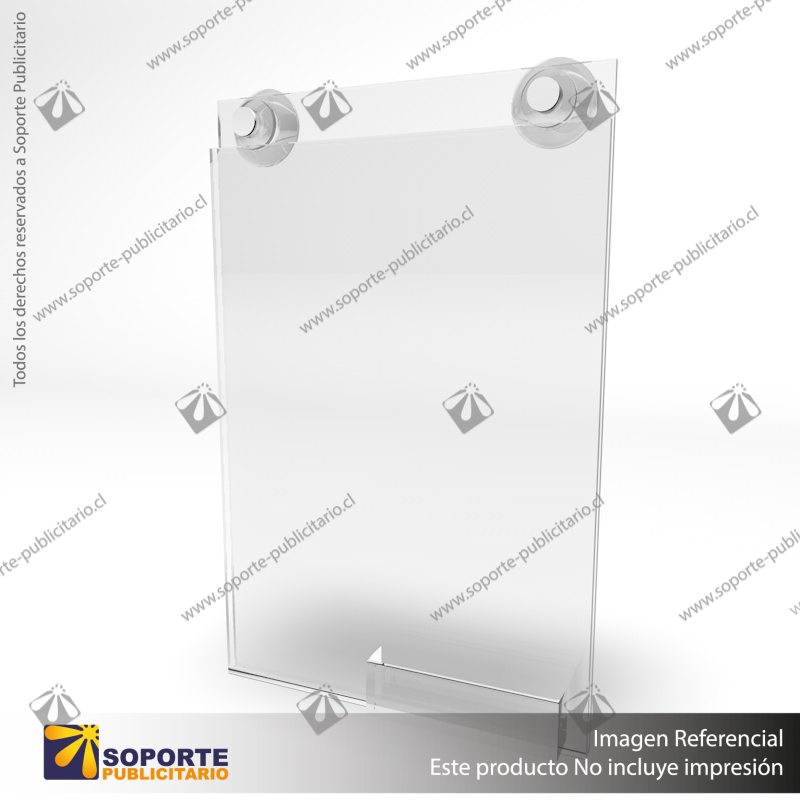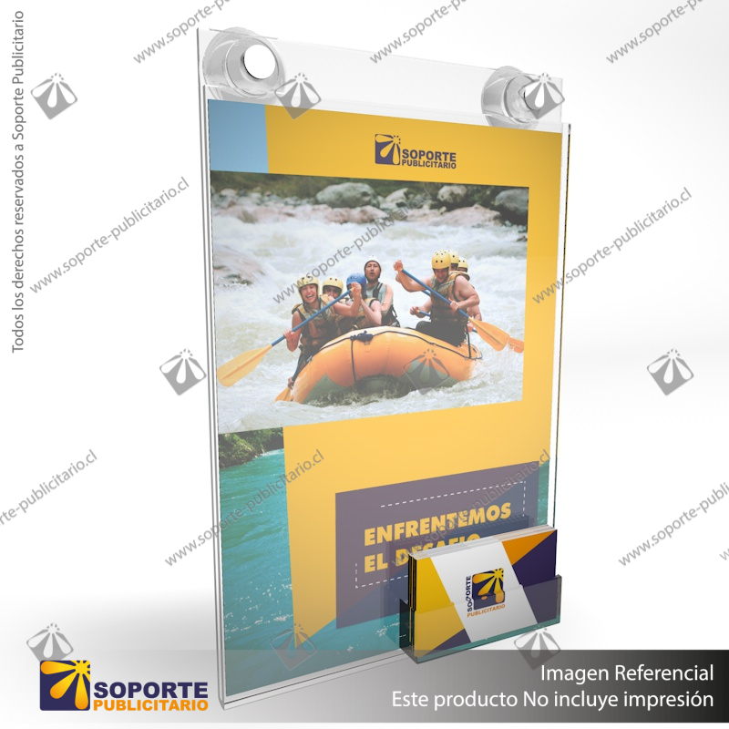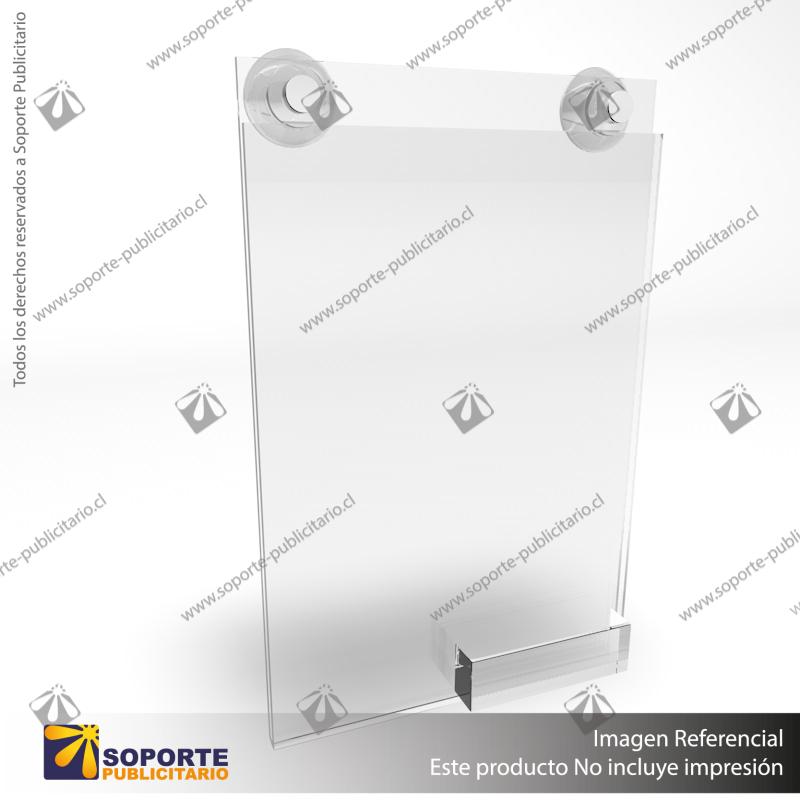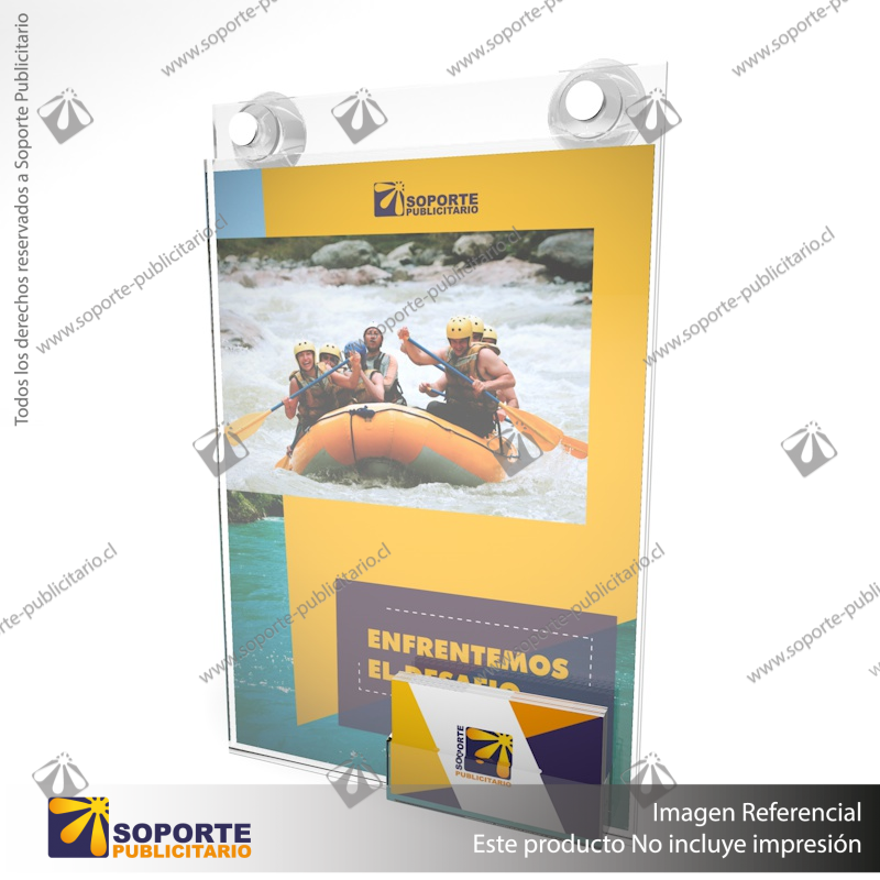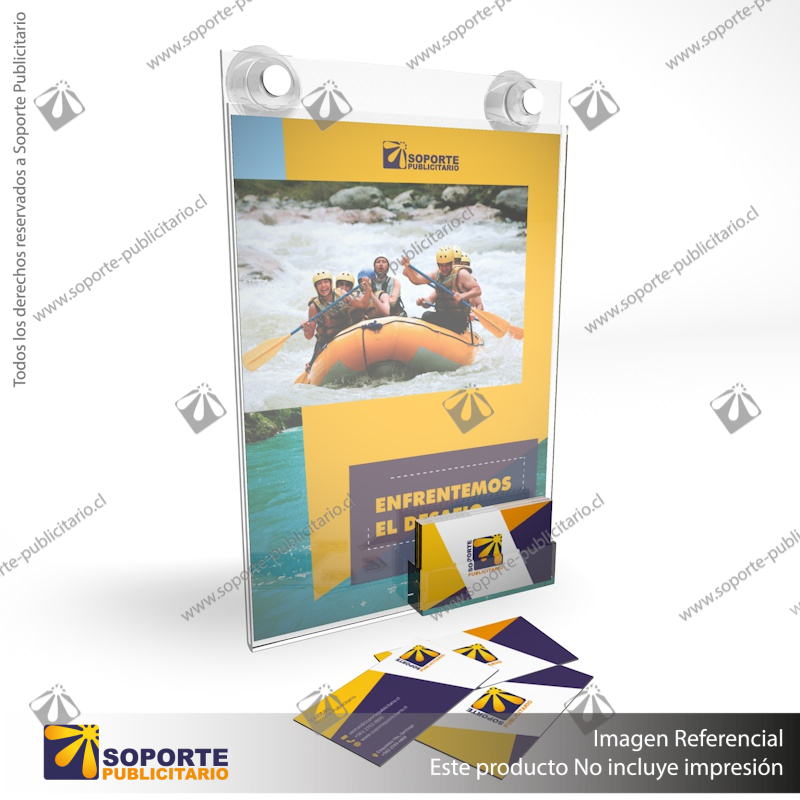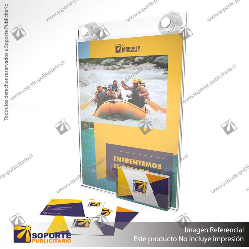 PORTA GRAFICA ACRILICO CON TARJETERO A4 (21*29.7 CMS) MURO VERTICAL 2 MM + VENTOSAS