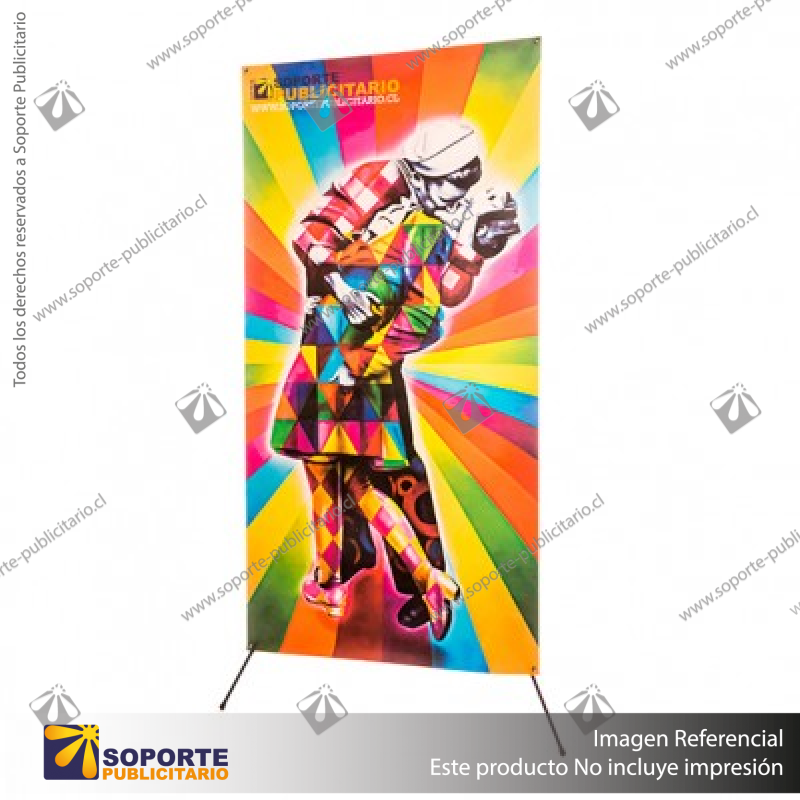 La gráfica para el Pendón x PRO debe ser impresa en tela pvc, papel sintético o papel sintético laminado en alta resolución a 1440DPI (Alta Calidad).