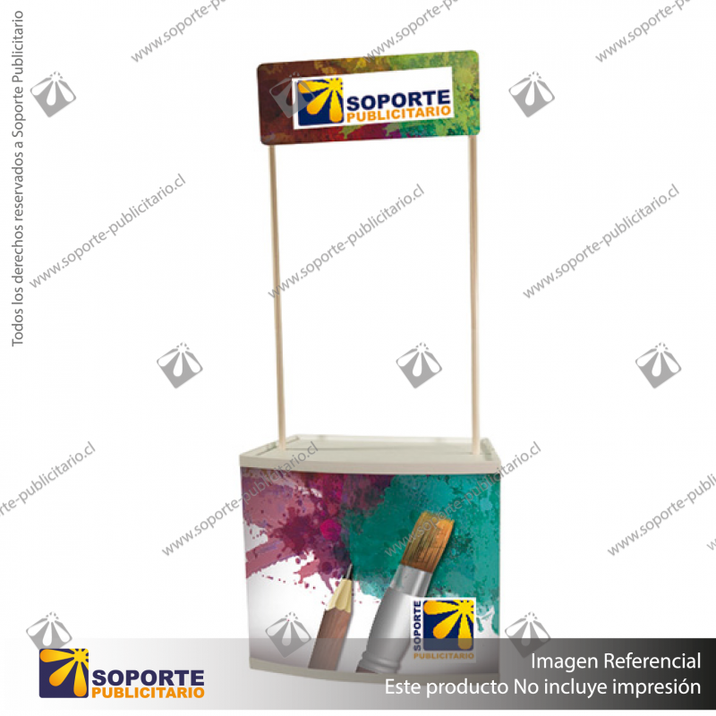 COUNTER PUBLICITARIO BASICO ECO (C2)El counter básico se caracteriza por crear un entorno de atención al cliente con 2 zonas para el desarrollo de gráficas, liviano para su transporte y de fácil armado. El counter publicitario se compone de 5 partes (cubiertas, cuerpo, pilares, cenefa y bolso). |