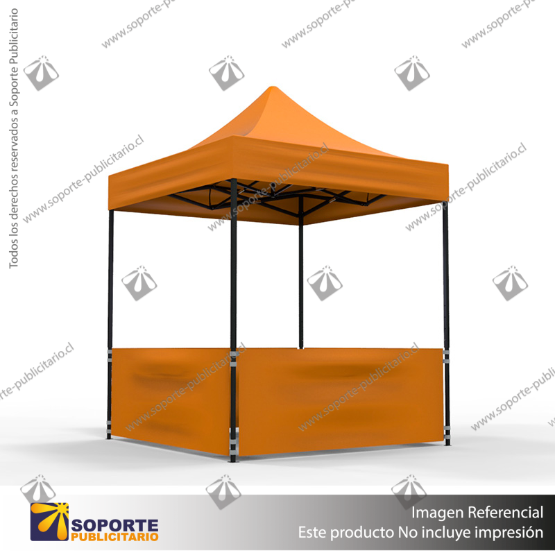 La carpa 2*2 mts color naranjo para toldo publicitario tiene como principal característica generar entornos que protegen al usuario de factores medioambientales como lluvia y sol entre otros, proporcionando sombra y un área confortable con una óptima visualización en 360°. El toldo publicitario se compone de 2 partes (carpas y packaging)
