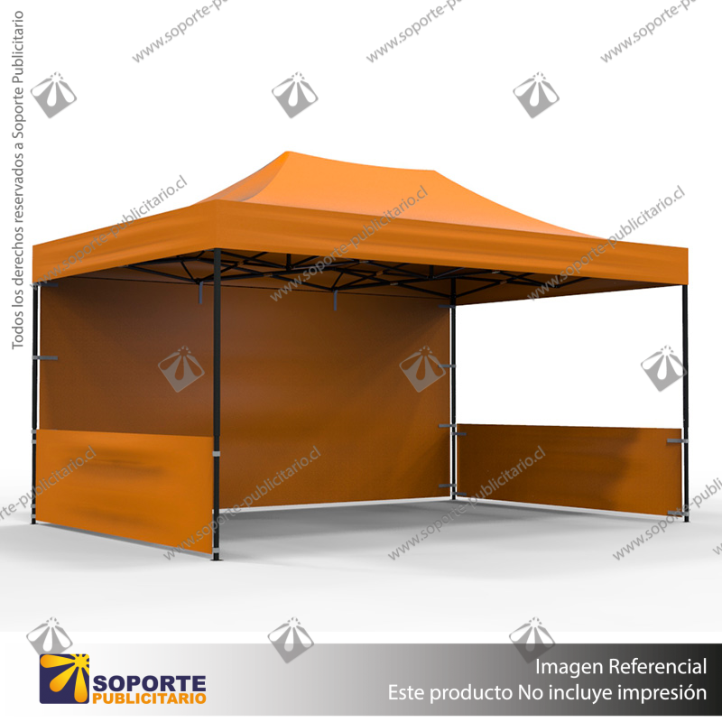 La carpa 3*4.5 mts color naranjo para toldo publicitario tiene como principal característica generar entornos que protegen al usuario de factores medioambientales como lluvia y sol entre otros, proporcionando sombra y un área confortable con una óptima visualización en 360°. El toldo publicitario se compone de 2 partes (carpas y packaging)