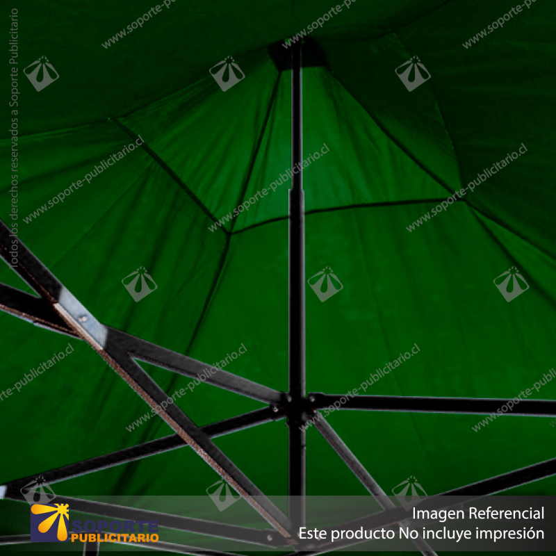 La carpa 3*4.5 mts color verde para toldo publicitario tiene como principal característica generar entornos que protegen al usuario de factores medioambientales como lluvia y sol entre otros, proporcionando sombra y un área confortable con una óptima visualización en 360°. El toldo publicitario se compone de 2 partes (carpas y packaging)