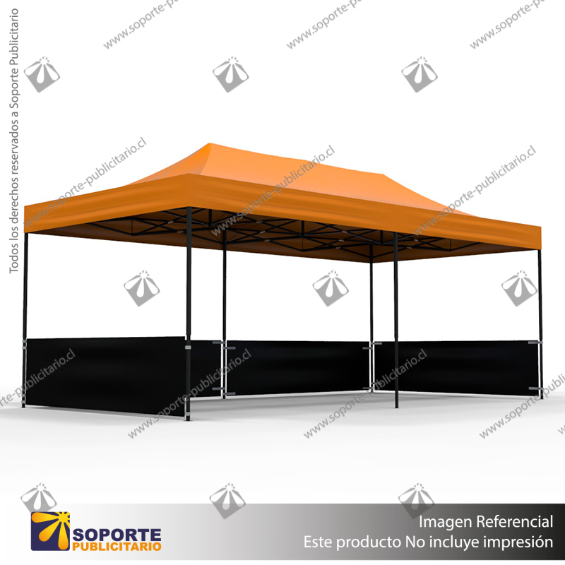 La carpa 3*6 mts color naranjo para toldo publicitario tiene como principal característica generar entornos que protegen al usuario de factores medioambientales como lluvia y sol entre otros, proporcionando sombra y un área confortable con una óptima visualización en 360°. El toldo publicitario se compone de 2 partes (carpas y packaging)