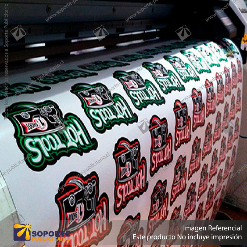 El sustrato para impresión vinilo blanco tiene un desarrollo 1.27mts de ancho por 50mts de largo que se compone por una película de PVC (Policloruro de vinilo) de alta calidad impregnada con un adhesivo acrílico permanente y un papel (Liner) con una cara recubierta de PE (Polietileno) el cual se retira para ser utilizado. El adhesivo blanco brillante es un sustrato que diseñado para impresión en alta resolución (1440 dpi).